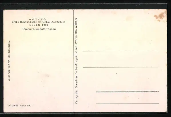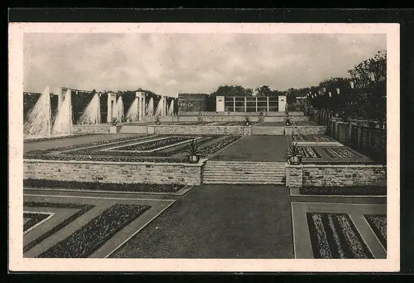 AK Essen, GRUGA 1929, Blumenrabatten auf 3 Ebenen