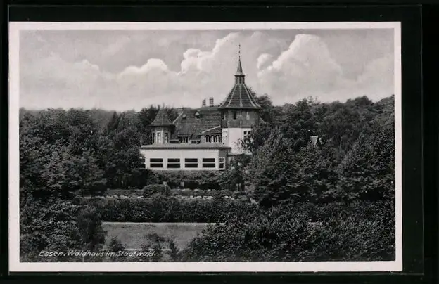 AK Essen, Gaststätte Waldhaus H. Mohr im Stadtpark aus der Vogelschau