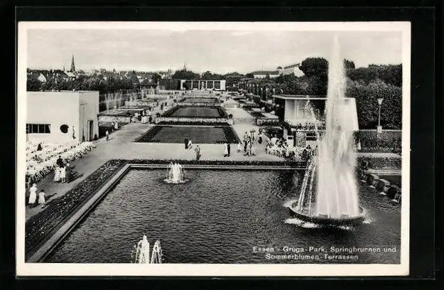 AK Essen, Gruga-Park, Springbrunnen und Sommerblumen-Terrassen