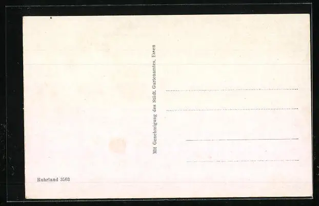 Personenbezogene Daten auf der Rückseite der Karte wurden durch blauen Textmarker unkenntlich gemacht. Die blauen Stellen sind auf die Vorderseite durchgeweicht und wirken sich negativ auf das Postkartenfoto aus
