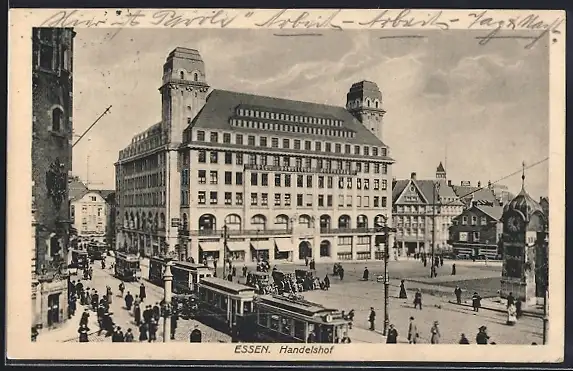 AK Essen, Handelshof mit Strassenbahn