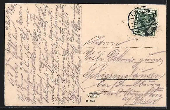 gelaufen 1916, Eckknicke re. unten, guter Zustand