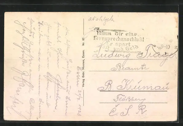 alte Ansichtskarte, gelaufen 1926, Briefmarke entfernt, rückseitig Oberflächenschaden, Eckknicke li. unten u. re. oben, guter Zustand