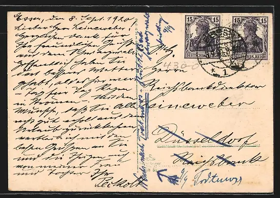 alte Ansichtskarte, gelaufen 1920, Stempelspur, guter Zustand