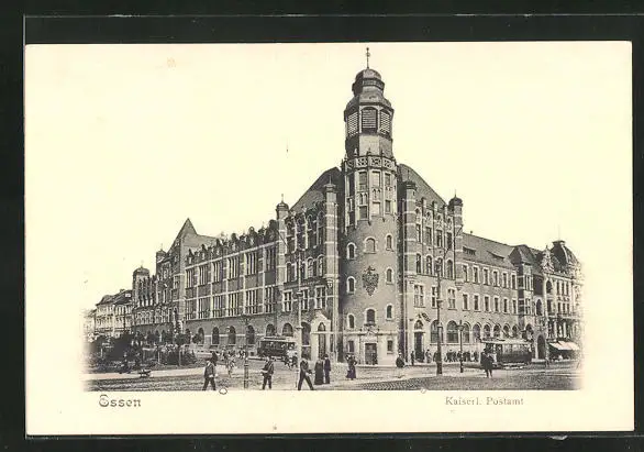 AK Essen, Kaiserliches Postamt mit Strassenbahnen