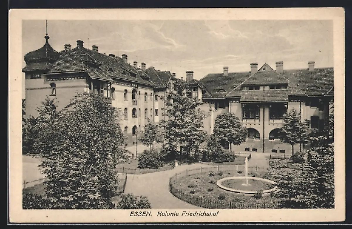 AK Essen, Kolonie Friedrichshof mit Springbrunnen