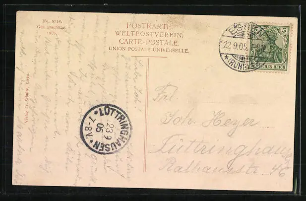 alte Ansichtskarte, gelaufen 1905, Eckknick li. oben, guter Zustand