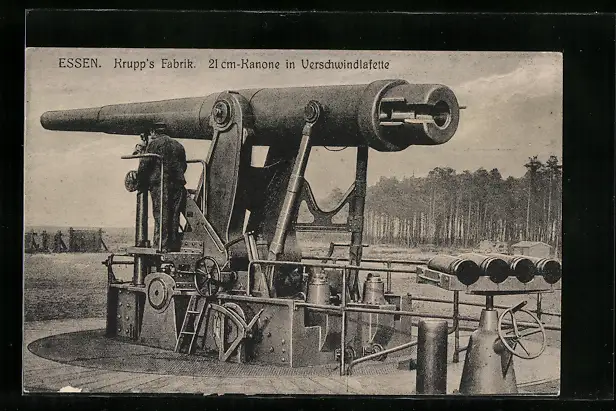 AK Essen, Krupps Fabrik, 21cm-Kanone in Verschwindlafette