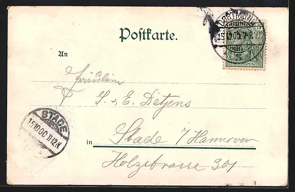 alte Ansichtskarte, gelaufen 1900, Stempelspur, guter Zustand
