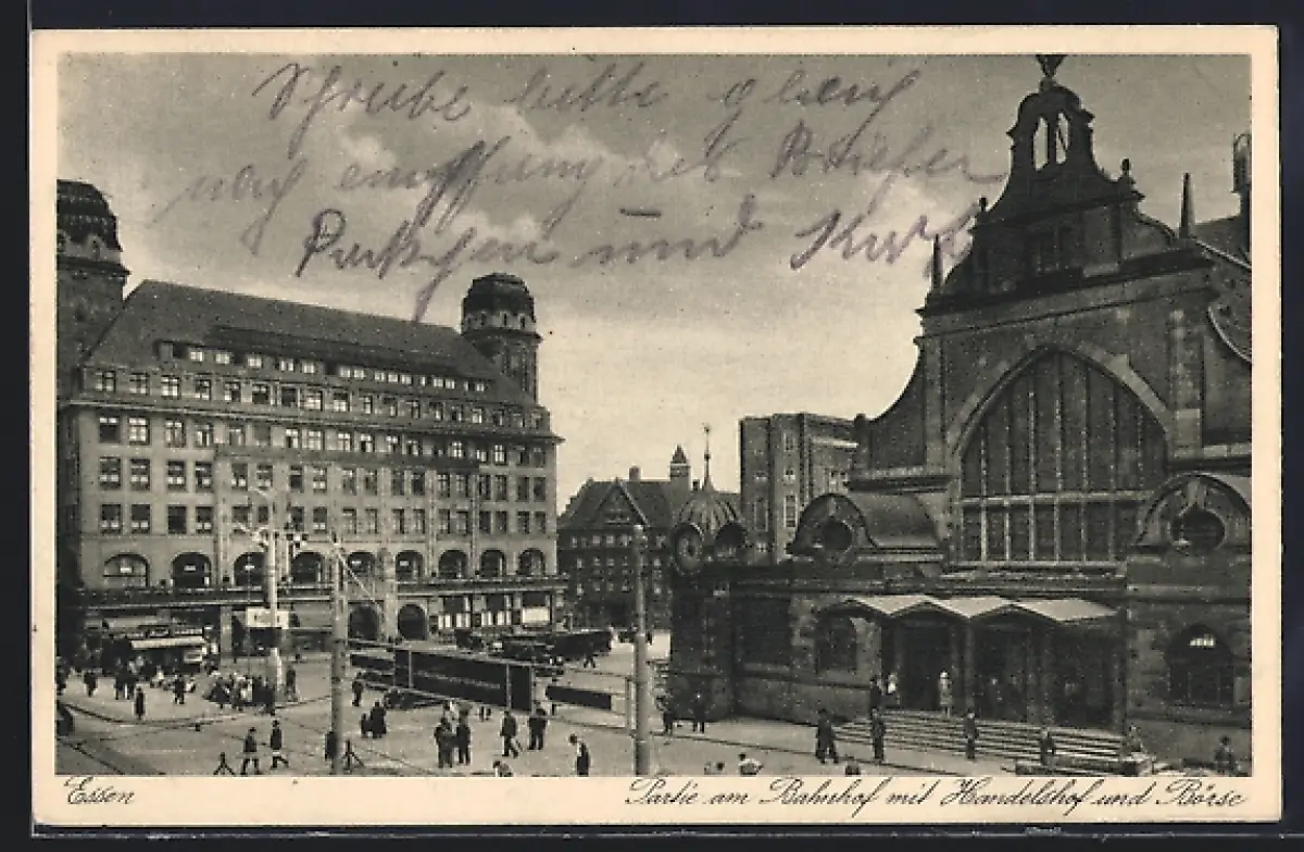 AK Essen, Partie am Bahnhof mit Handelshof und Börse