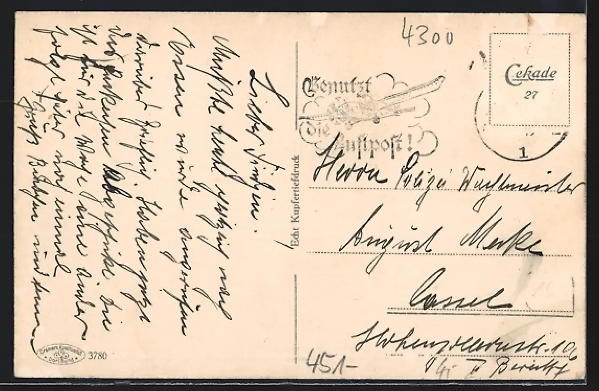 alte Ansichtskarte, gelaufen, Briefmarke entfernt, rückseitig Oberflächenschaden, guter Zustand
