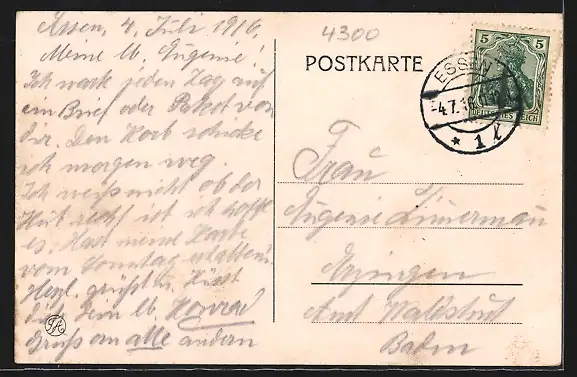 alte Ansichtskarte, gelaufen 1916, Stempelspur, guter Zustand