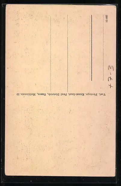 Personenbezogene Daten auf der Rückseite der Karte wurden durch blauen Textmarker unkenntlich gemacht. Die blauen Stellen sind auf die Vorderseite durchgeweicht und wirken sich negativ auf das Postkartenfoto aus