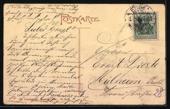alte Ansichtskarte, gelaufen, Abriebspuren und kl. Randschaden li. Mitte, guter Zustand