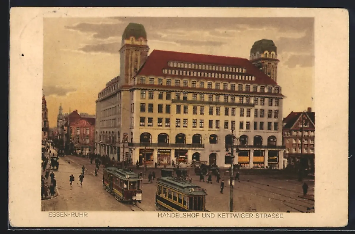AK Essen-Ruhr, Handelshof und Kettwiger Strasse, Strassenbahn