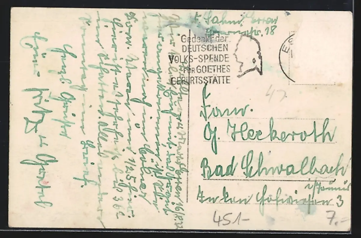 alte Ansichtskarte, gelaufen, Briefmarke entfernt, rückseitig Oberflächenschaden, guter Zustand