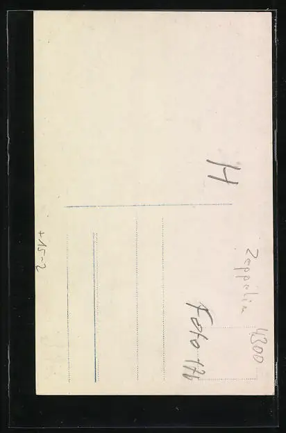 Personenbezogene Daten auf der Rückseite der Karte wurden durch blauen Textmarker unkenntlich gemacht. Die blauen Stellen sind auf die Vorderseite durchgeweicht und wirken sich negativ auf das Postkartenfoto aus