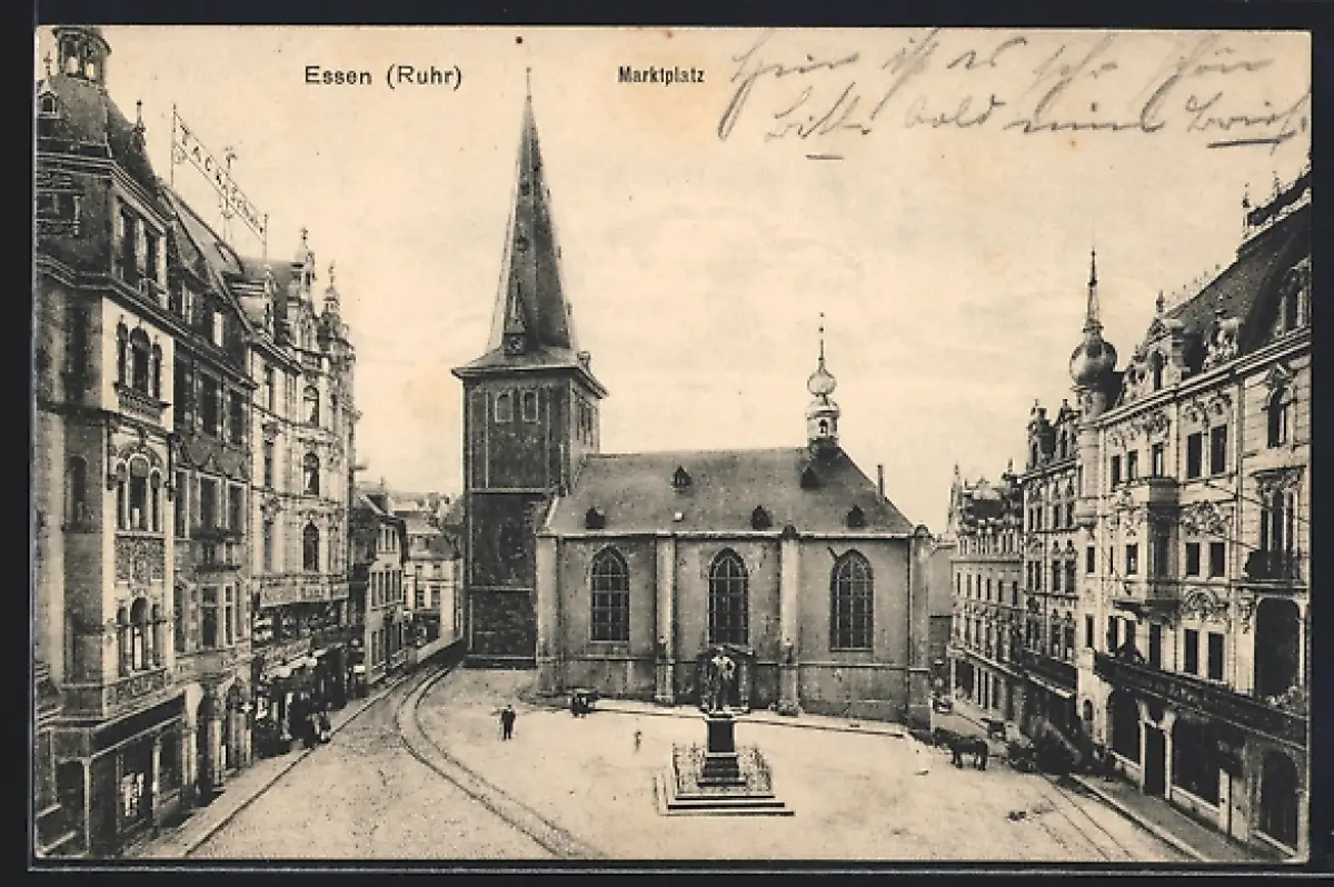 AK Essen /Ruhr, Marktplatz mit Geschäften