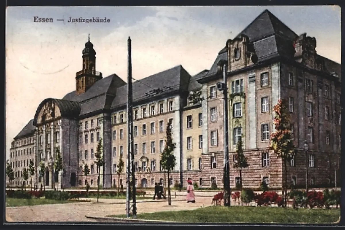 AK Essen / Ruhr, Partie vor dem Justizgebäude