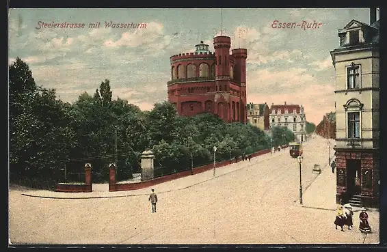 AK Essen /Ruhr, Steelerstrasse mit Wasserturm