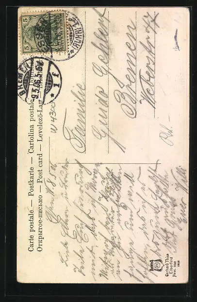 alte Ansichtskarte, gelaufen 1906, Eckknick re. oben, guter Zustand