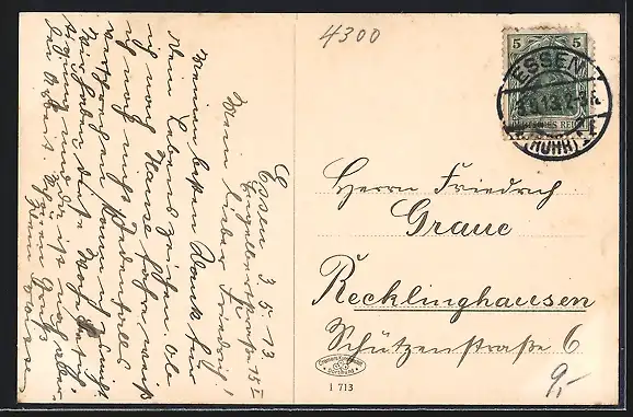 alte Ansichtskarte, gelaufen 1913, Stempelspur, guter Zustand