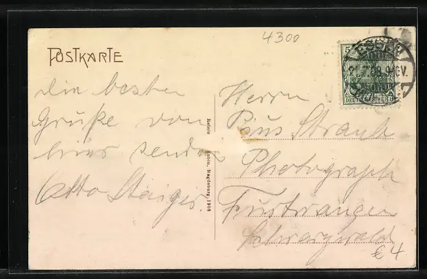 alte Ansichtskarte, gelaufen, rückseitig Oberflächenschaden, guter Zustand