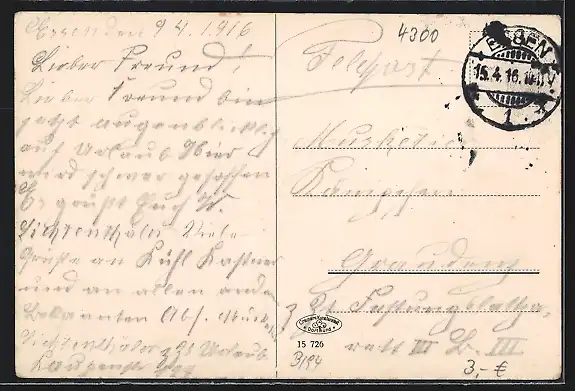gelaufen 1916, Stempelspur, guter Zustand