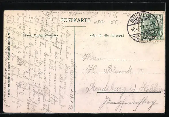 alte Ansichtskarte, gelaufen 1912, Stempelspur, guter Zustand