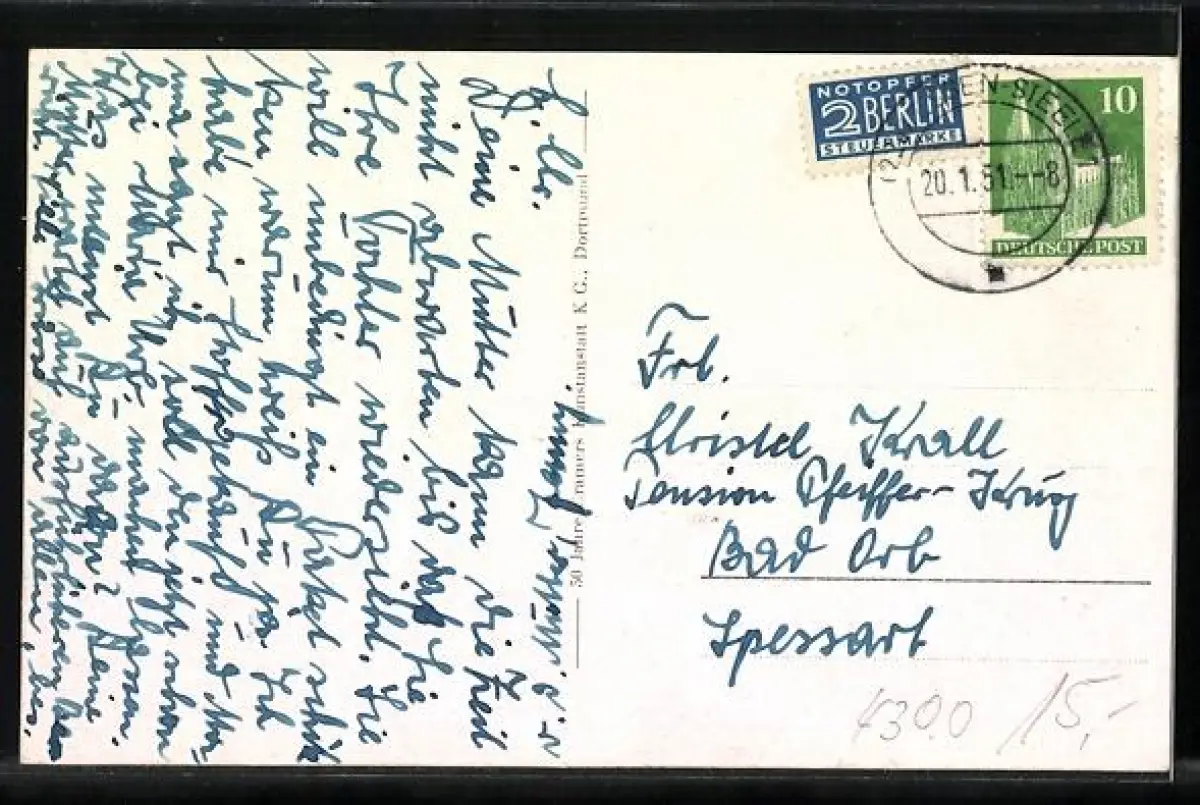 alte Ansichtskarte, gelaufen 1951, guter Zustand
