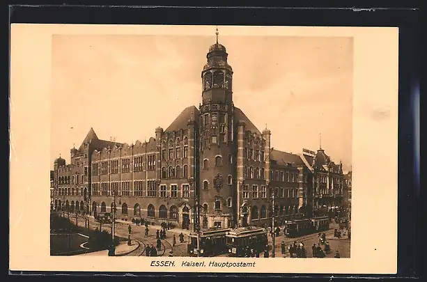 AK Essen, Strassenbahn vor Kaiserl. Hauptpostamt