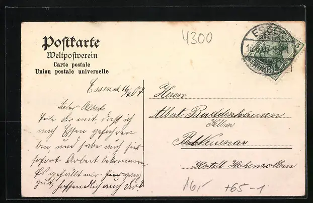 alte Ansichtskarte, gelaufen 1907, guter Zustand