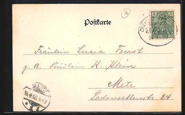 alte Ansichtskarte, gelaufen 1900, guter Zustand