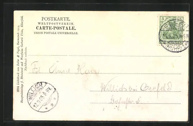 alte Ansichtskarte, gelaufen 1905, Stempelspur, guter Zustand