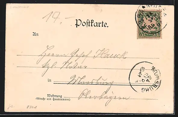alte Ansichtskarte, gelaufen 1897, Eckknick oben links, guter Zustand