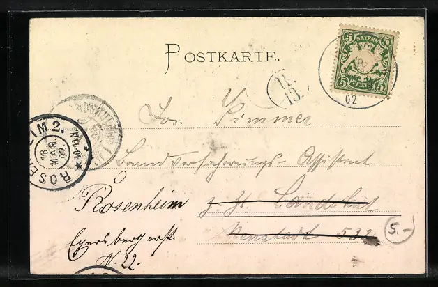 alte Ansichtskarte, gelaufen 1902, Einriss li. oben, guter Zustand