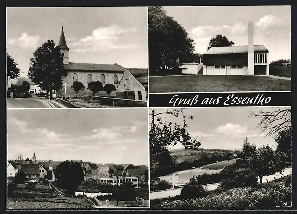 AK Essentho, Kirche, Orts-Teilansicht, Landschaftspanorama