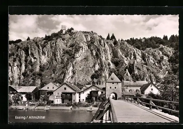 AK Essing /Altmühltal, Ortspartie mit Brücke und Felsenhang
