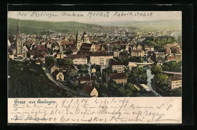 AK Esslingen / Neckar, Teilansicht mit Kirche