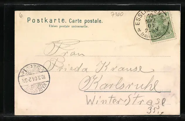 gelaufen 1904, Eckknick re. unten, guter Zustand