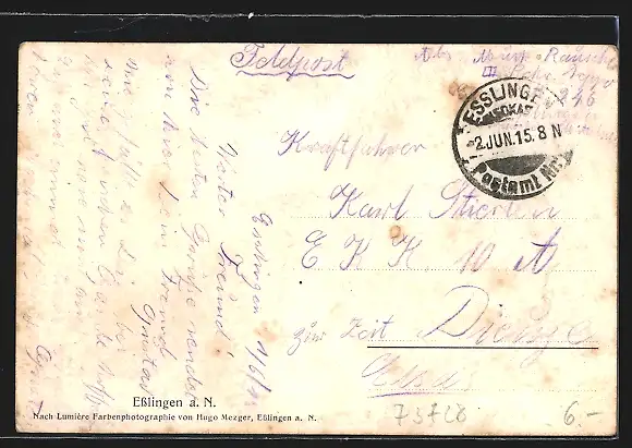 alte Ansichtskarte, gelaufen 1915, Stempelspur, guter Zustand