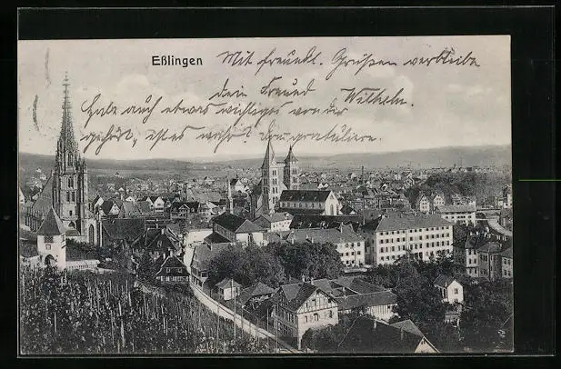 AK Esslingen, Ortsansicht aus der Vogelschau