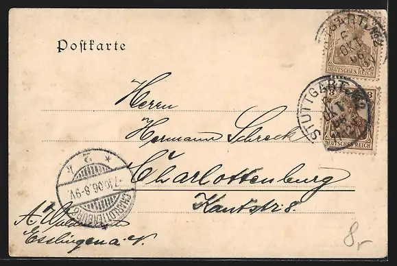 gelaufen 1906, Eckknick re. oben, guter Zustand