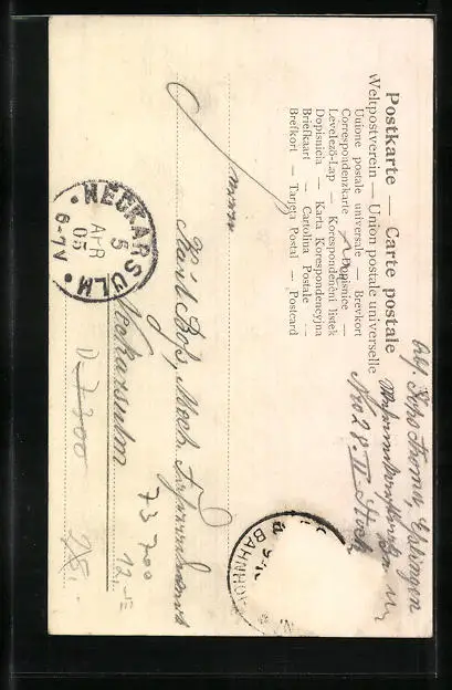 alte Ansichtskarte, gelaufen 1905, Briefmarke entfernt, guter Zustand