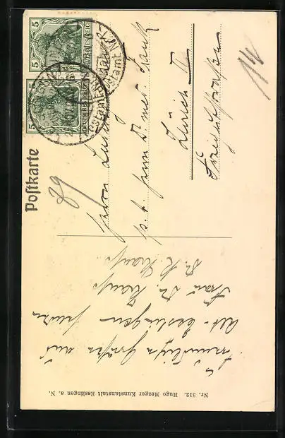 alte Ansichtskarte, gelaufen 1908, Stempelspur, guter Zustand