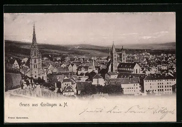 AK Esslingen a. N., Ortsansicht aus der Vogelschau