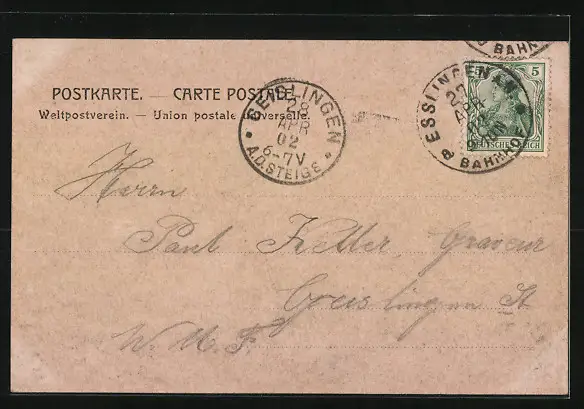 gelaufen 1902, guter Zustand