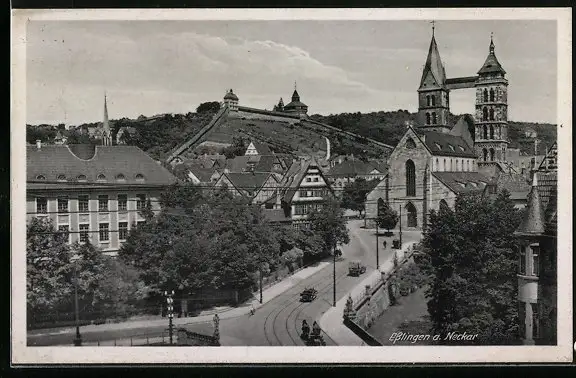 AK Esslingen a. N., Ortspartie aus der Vogelschau