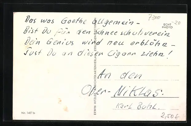 ungelaufen, Rückseite beschrieben, guter Zustand
