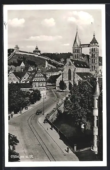 AK Esslingen a. N., Strassenpartie mit Kirche